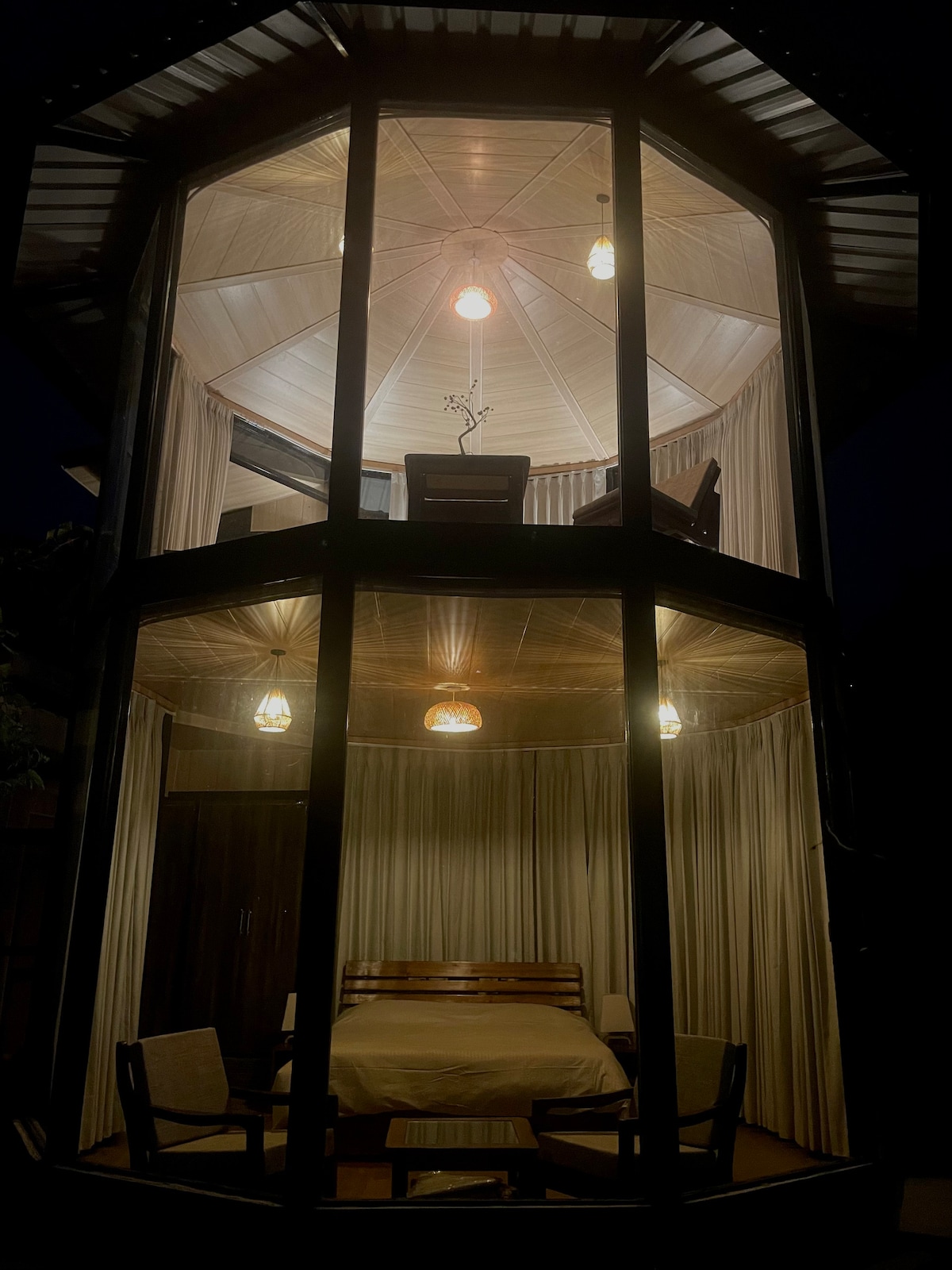 A stunning glass cabin, Up in the slopes of Manali. With panoramic views and a glass ceiling, wake up to the forest and fall asleep under the stars. Nestled deep in the jungle, Cove is ideal for nature lovers and adventurers. The adventure kicks off with a scenic 1 hr. UPHILL TREK—a mini expedition to your hidden paradise! And no worries, our guide’s got your back and your bags, making the journey as easy as it can get.