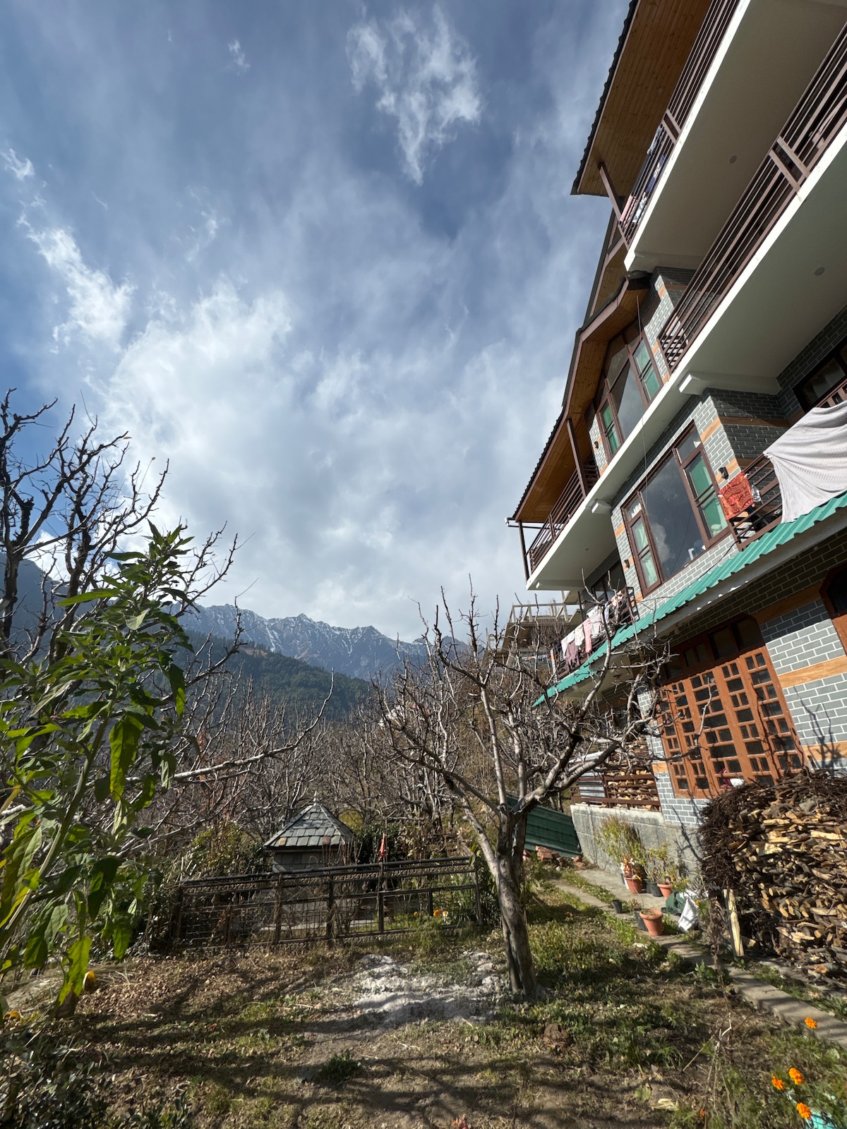 A true-blue working Apple orchard, barely 400 meters from the iconic & world-famous NAGGAR CASTLE, in a quaint little village called Chanalti. It is a rustic village set-up but fitted with all modern-day comforts - along with unending cups of herbal tea, coffee & stories to share! It is a place where the air is always fresh, the views are always stunning, and our hospitality is always homely, warm and welcoming! Min 2 Night Stay required! Pls. DO NOT book for 1 Night. STAGS NOT ALLOWED 🚫