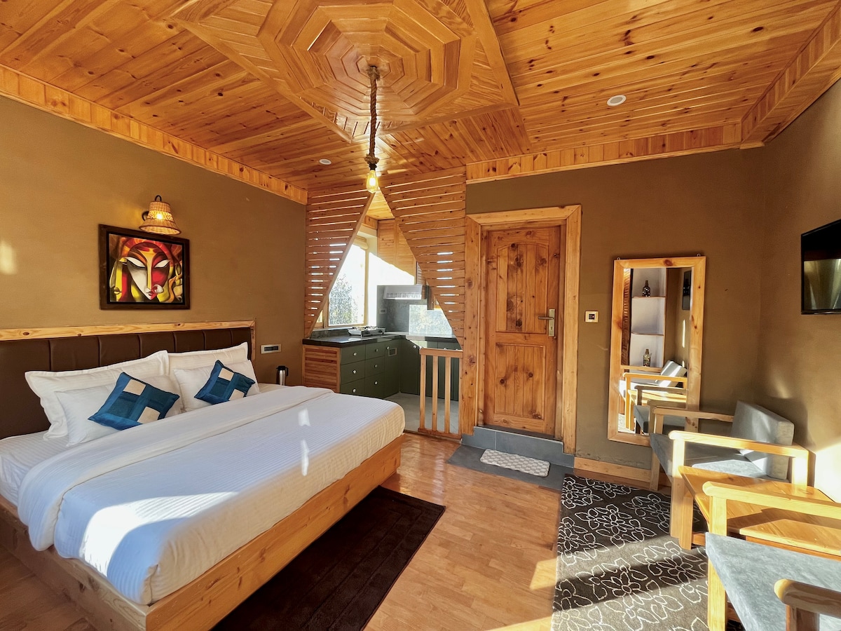Experience the Himalayas from a property that will feel like your own home in the mountains. This holiday home comes with a warm and cozy bedroom with a breathtaking view and an attached balcony, and without wifi it is a perfect way to disconnect. A spacious hall with a kitchenette to make your quick meals and hot coffee or tea with another attached balcony. A bathroom that is specially designed to make sure you don’t miss out on the view, with 24/7 water and a geyser to keep you warm