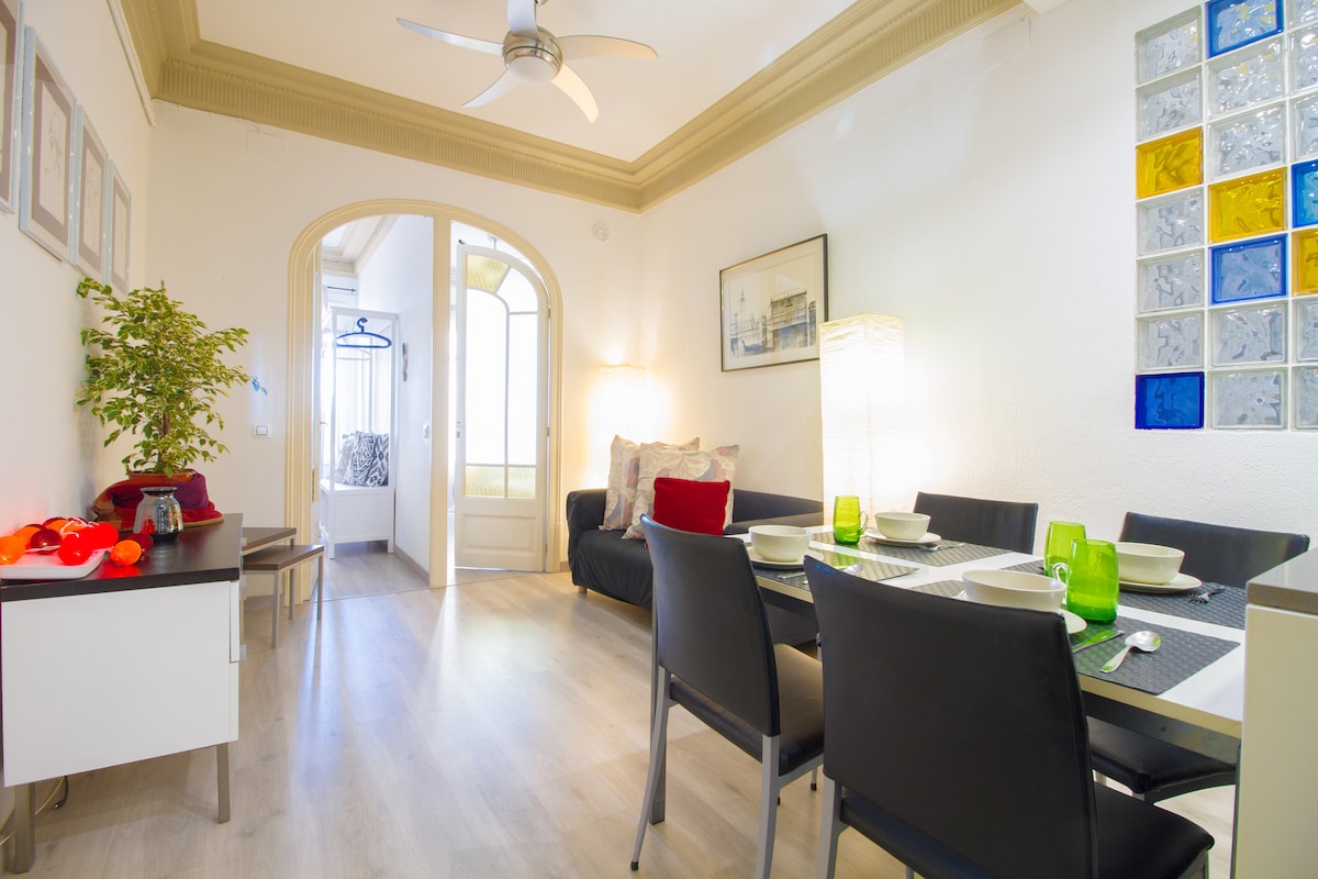 Adorable Bright and Cozy Apartament. Autentic HERMOSO, LUMINOSO Y AMPLIO APARTAMENTO- HUTB-010021 ESFCTU00000807200037216800000000000000HUTB-010021-438 Perfect place for families fantastic spacious over 100m2 3 bedrooms ( one of them small and next to the double one) and 2 bathrooms apartment located in elegant and safe Eixample Dreta area - In front of the "Monumental Plaza de Toros", and walking distance to Sagrada Familia and Paseo de Gracia. Maximum capacity 5 persons (including babies)