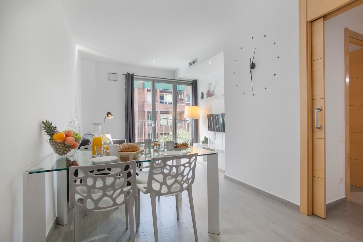 Fully serviced boutique apartment. 30 min daily cleaning included Monday through Saturday. Common areas cleaned and disinfected every day. For adults 30+, families and business trips. No bachelor parties accepted. Check in after 20:00 has an extra cost of 30 euros and after 24.00 50 euros . Barcelona city Tourist Tax of 6€, from 1st of April 2024, per day per adult over 16 years, to be paid at the check in. License HUTB 004319