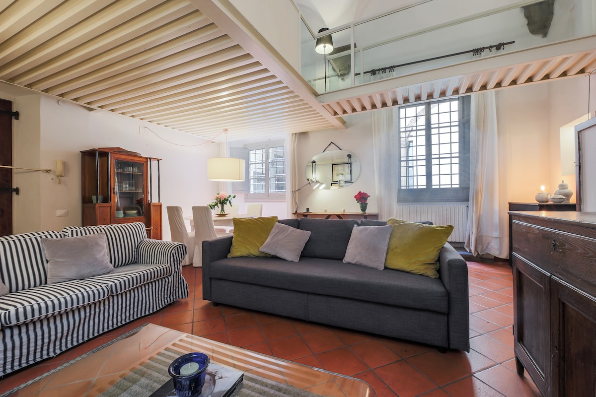 Discover a prestigious loft-style apartment just steps away from the Duomo in Florence. Elegantly furnished with original antique furniture, it offers the perfect Renaissance atmosphere for your stay. If you're arriving by car, we have a free garage located 3.5 km away OUTSIDE THE PEDESTRIAN ZONE and we will make it easy for you to use the parking. Please note that it is recommended only if you do not plan to use your car during your stay. Contact us for more details!