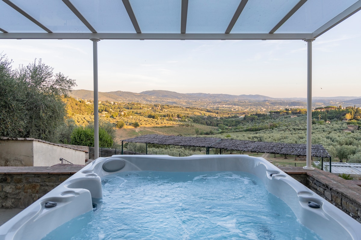 Immerso nel verde delle colline fiorentine, a 15 minuti dal centro di Firenze, l'appartamento è nuovissimo, spazioso, elegante e accogliente. Si compone di soggiorno, cucina, due camere, due bagni, una lavanderia e una sauna privata. Dotato di parcheggio privato e di tutti i comfort per rendere il soggiorno facilissimo (AC, TV, lavastoviglie e lavatrice) può ospitare fino a 5 persone ed è adatto a famiglie, piccoli gruppi di amici, bambini e neonati. WI-FI ad alta velocità.