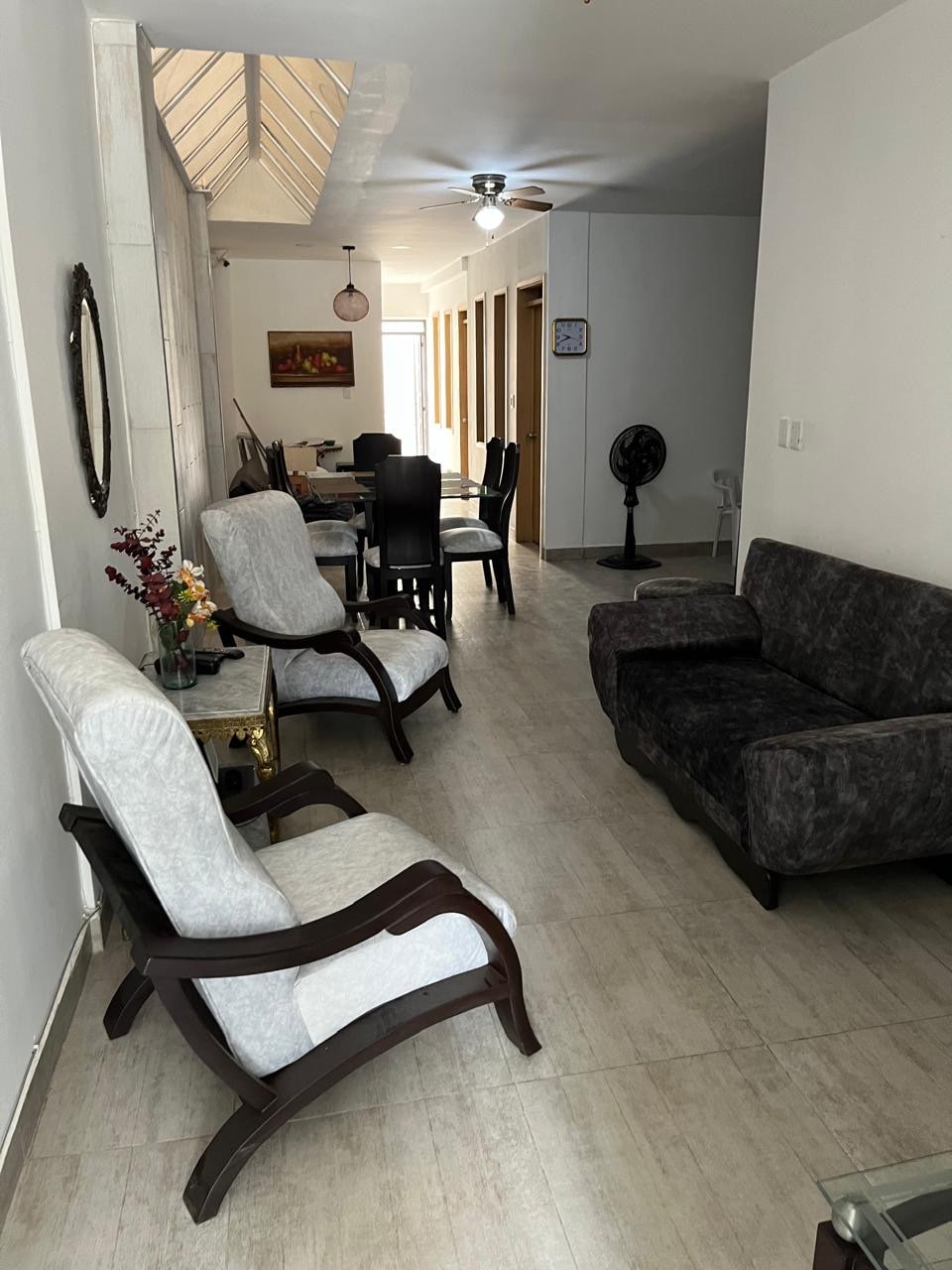 Una Casa campestre en la ciudad. Ideal para grupos grandes. Tiene un enorme patio, rodeado de plantas, donde puedes disfrutar de la naturaleza Una habitación principal, con cama doble y cama auxiliar, sala con sofacama baño, tv y aire acondicionado Y 2 habitaciones con cama doble cada una y camas auxiliares; baño, sala con tv y sofacama, aire acondicionado Amplia sala corredor con espacio para trabajar y ramada donde esta la cocina, comedor y baño. Tiene 3 baños completos.