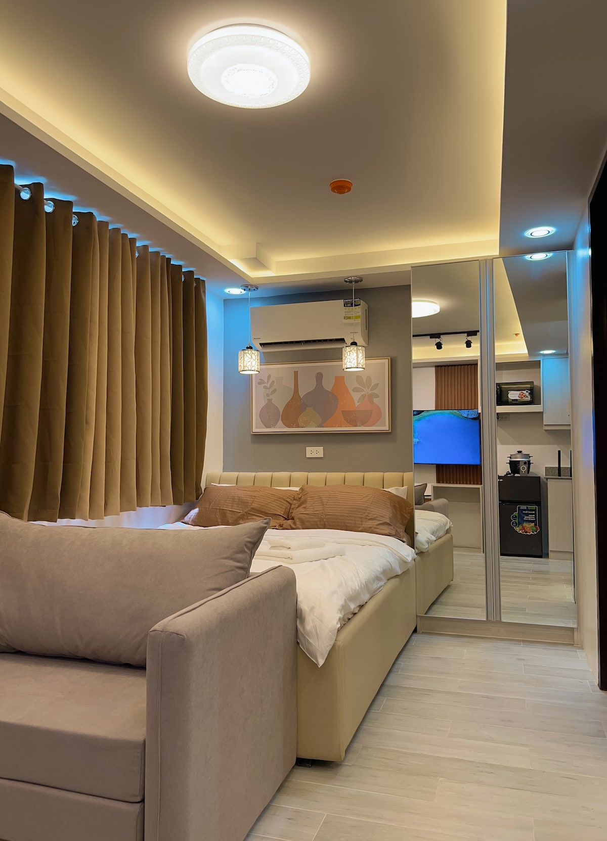 A cozy & thoughtfully furnished studio condo near Cebu’s major commercial & business hubs - IT Park & Ayala Center! So whether you’re visiting Cebu for business or leisure, you’re sure to be accessible & within reach to your destinations. Feel right at home and be greeted with the wonderful views of the sunrise, the hills and fairways. And with Fiber internet, always stay connected wether for work or Netflix. We’d love for you to experience Cebu and to feel right just at home.