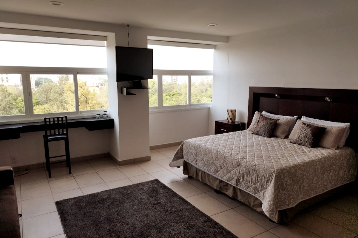 Hermoso depa/estudio para 4 personas, en condominio de Lujo, ubicado en REFORMA una de las mejores zonas céntricas y seguras de CDMX, podrás mover fácilmente a cualquier punto de la ciudad y sus principales atracciones turísticas como: centro histórico, ángel de la Independencia, Castillo Chapultepec, Auditorio Nacional y diferentes museos de la zona. También estamos muy cerca zonas como colonia Roma, condesa, Polanco, entre otras. Disfruta de hermosa alberca, jacuzzi, gimnasio y más amenidades