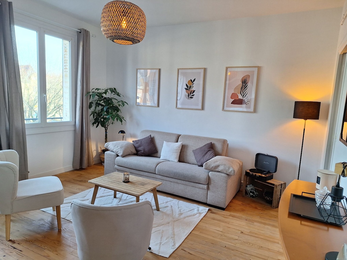 Looking for a Norman getaway combining modern comfort, charm, and discovery? Welcome home! Discover our 65m² apartment, fully and carefully renovated, nestled in the heart of Lisieux. It's the ideal retreat for reuniting with family, friends, or even colleagues. Enjoy a peaceful and fully equipped space after a day exploring the beaches, the Pays d'Auge, or historic sites. With its small private garden, it's a true invitation to relax!