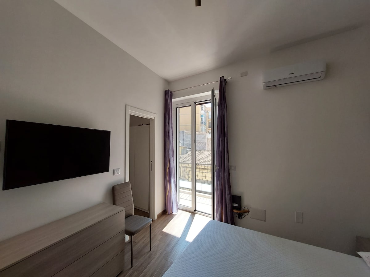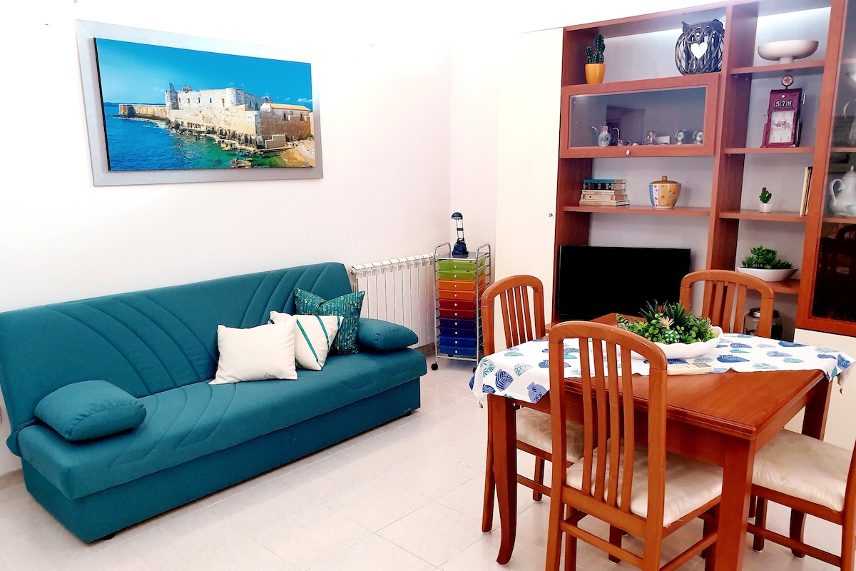 Modern apartment with free parking located in the historic center of the township of Syracuse, a short walk from the island of Ortigia. Casa Dolce Anna is designed for people who want to spend quality time in one of Italy's most fascinating cities. The apartment includes a large double bedroom (TV included) modern bathroom and a living area with a double sofa bed, equipped with all the necessary amenities, which includes an area dedicated to smart working and a Smart TV with Netflix.