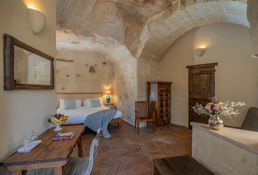 Ipogea Guesthouse is a typical residence in the Sassi of Matera, elegantly restored and equipped with all modern comforts. It offers up to 4 beds, an induction kitchen, and two bathrooms. Inside, an authentic hypogeum carved into the tuff rock reveals the city's oldest soul. Guests can enjoy an exclusive wellness experience thanks to the private sauna and steam bath. Located at 33 San Rocco Street, it is in the heart of the Sassi but easily accessible.