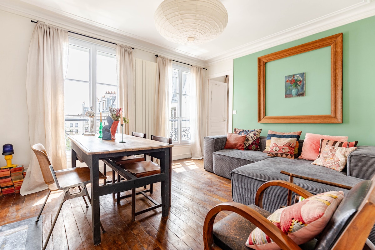 Charming, light and cosy flat with city views. Conveniently located right around the corner from Canal Saint Martin and very near both Gare du Nord and Gare de l'Est, it's easy to come and go explore. Ideal for couples or families. // Owners will be happy to help you with any information in English, Français, Deutsch, Italiano, или русский.