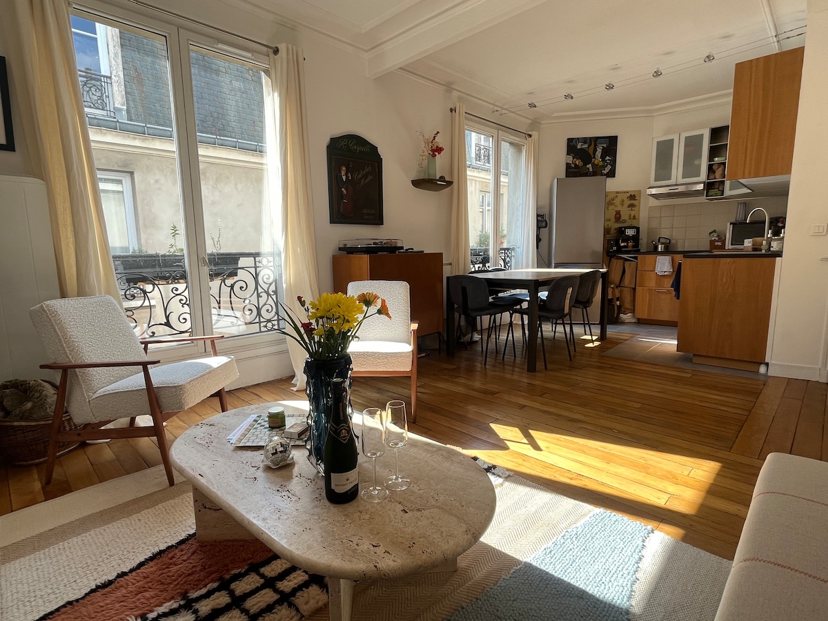 This very bright flat in the heart of Montmartre, the most romantic neighborhood in Paris, in a perfectly located yet quiet street (2 minutes walk from the Sacré Coeur and place du Tertre) will make your stay in Paris unforgettable. Fully equipped (king-size bed, home-cinema, vinyl player, washing-machine, towels, hair-dryer, etc...). The kitchen has everything you need. Contact me if you have any question :)