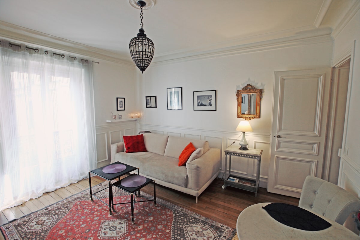 This Romantic apartment is located in what has recently become a very fashionable neighborhood out of the tourist area, yet within a 2 minute walk of Sacré-Coeur. Perfect place for a couple spending some days in Paris . Attention : the coach ca not be used to sleep ; only couple accepted