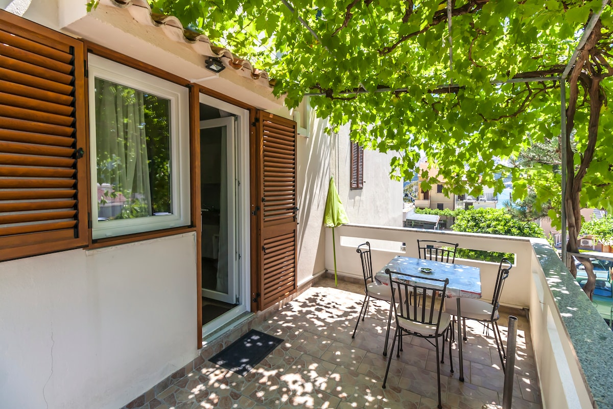 Well equipped, clean & modern apartment, located just 300m from the beach in quiet neighborhood, with big terrace and all the commodities you need. It is the oasis if you like to relax and enjoy spectacular view of the sea and nearby islands and Mediterranean garden. Our house is pet friendly but we charge additional fee for pets.