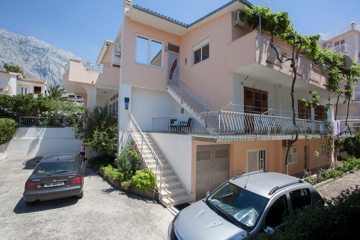 Apartman idealan za parove i solo putnike. Obiteljska tradicija iznajmljivanja apartmana traje od 1980. godine. Apartman je okrenut prema moru, gdje možete uživati na balkonu s prekrasnim pogledom na more i otoke. Nalazi se u samom centru Brela, svega 4-5 minuta od centra, plaže i svih aktivnosti vezanih uz obalu. Restorani, supermarket, pekara, kafići, ljekarna, crkva i plaža mogu se obići pješice, a parking vam je besplatan. Domaćin će vas dočekati i dati vam sve preporuke.