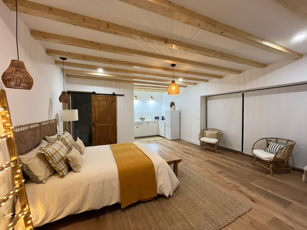 Disfruta de este alojamiento completamente reformado, es un apartamento bajo cubierta de 45m2 distribuidos en dos únicas estancias. Buena luz natural, y una cálida luz ambiental por la noche. Está ubicado en el centro histórico de la población, la cual tiene acceso directo a la autopista que te facilita la visita a cualquier zona del entorno. A 13km de la playa más cercana, y rodeado de monte y naturaleza. numero de registro ESFCTU00002001600019128400000000000000000000ESS031106