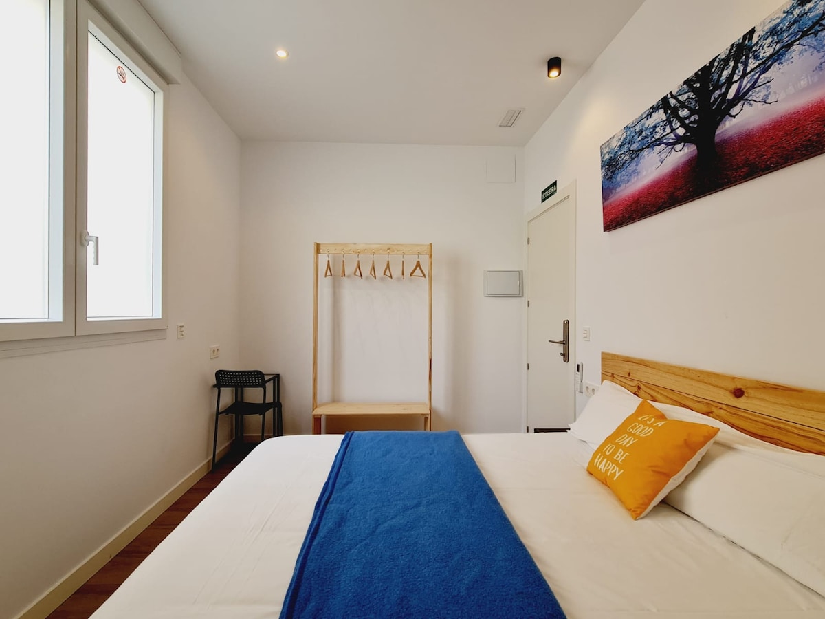 Modern design room, 5 minutes walking to main attractions. Double bed (for bookings of 3 persons, extra bed is added). Large window with open views to the city and the trees, private bathroom, free hi-speed wifi, heater and aircon, highly soundproof, 43'' TV with casting system. Access to common area with sofa, PC, food area (microwave, refrigerator, sink, dishes), coffee maker and vending machine.