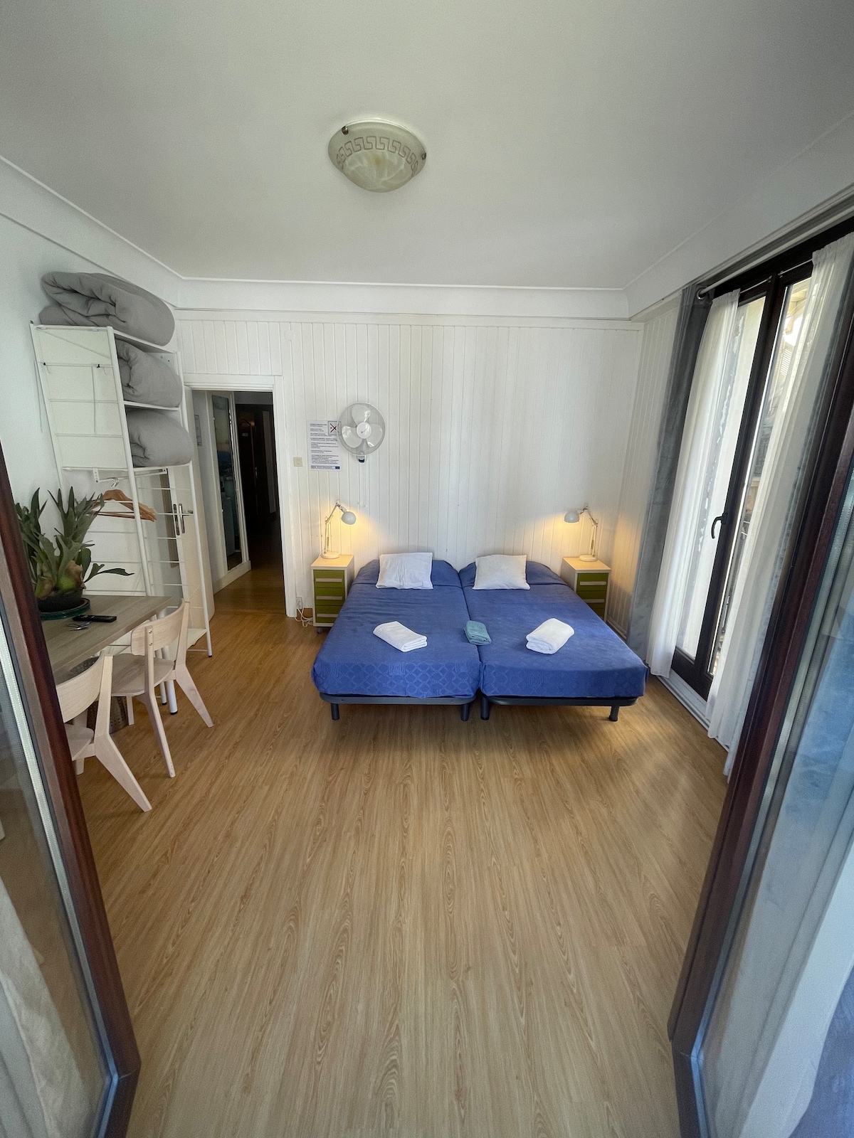 Amplia habitación doble con posibilidad de montar una tercera cama. 2 Balcones a la ciudad, mesa de trabajo. El baño es grande y se comparte con otras dos habitaciones. Licencia HSS00780