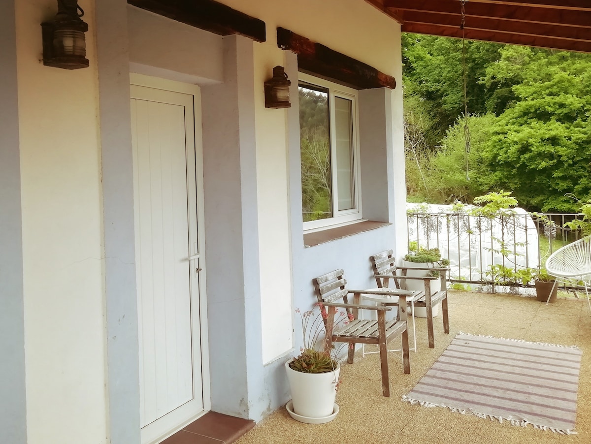 It is a studio of 20m2 annexed to the house, ideal for 2 people although it has an adjoining bed for child / adult and can accommodate up to 3 people. The studio has 10m2 of terrace and 138m2 of fenced garden, and private for the guests. The studio is located in a very quiet neighborhood 3 km from Gernika, 13 km from the beaches and 35 km from Bilbao, in the Urdaibai Biosphere, exactly on the Camino de Santiago where you can rest without the noise of cars or noise.