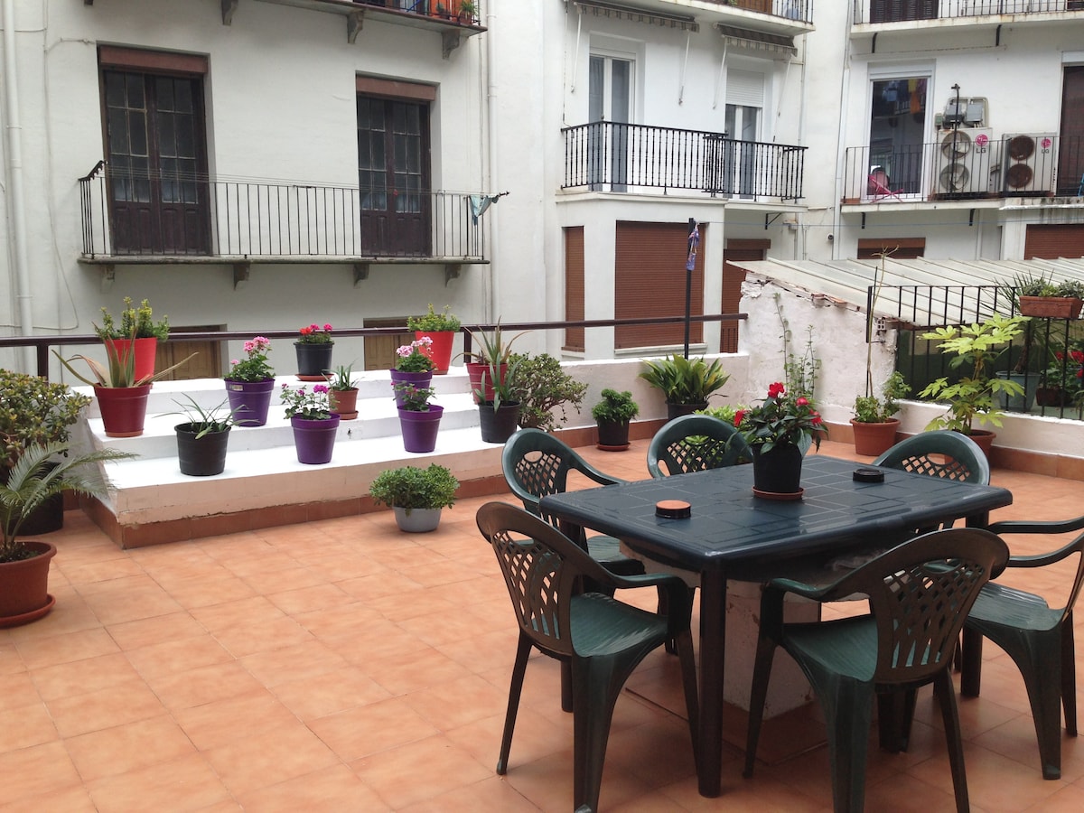 Apartment 80 meters in the center of San Sebastian. three bedrooms two with double beds and one with twin beds, a terrace of 60 meters. Perfect for strolling the city know, the beaches, in the heart of snacks and restaurants. Se alquila apartamento de 80 metros cuadrados con una terraza de 60 metros, reformado en Junio del 2011 en el centro de San Sebastian. Tiene tres habitaciones dos con cama doble y una con dos camas individuales, cocina completa, baño con ducha y recibidor. Esta a 50 metros del Boulevard, donde paran todos los autobuses urbanos de la ciudad y tambien hay una parada de taxis. Perfecto para conocer paseando la ciudad, las playas, en plena zona de pintxos y de restaurantes. A un paso del museo San Telmo, el palacio de congresos del kursal o el Aquarium. Ideal para conocer la costa vasca; tanto la española: Getaria, Zarautz, Fuenterrabia, ... , como la francesa: San Juan de Luz, Biarritz, Bayona, ..