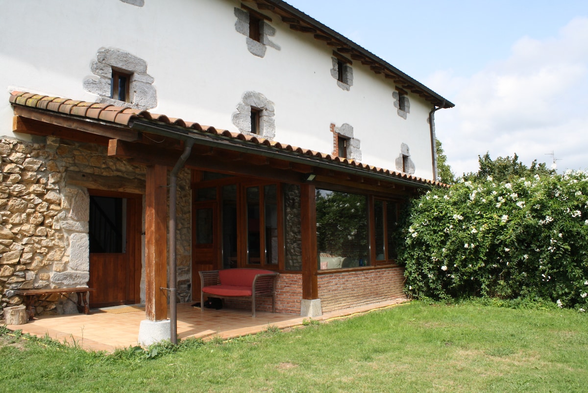Aquí vivimos y es un espacio rodeado de montañas, naturaleza y animales para desconectar y disfrutar de un entorno único. Orientado para personas que busquen un ambiente tranquilo y familiar. A 10 km de San Sebastián , para disfrutar de su gastronomía y su belleza y también de Francia y sus lindas playas. Las zonas exteriores, jardines, piscina y barbacoa son comunes a todos los huéspedes! Las mascotas abonan 10€ por día cada una. Piscina de temporada: abre 22 mayo cierra 6 de Octubre.