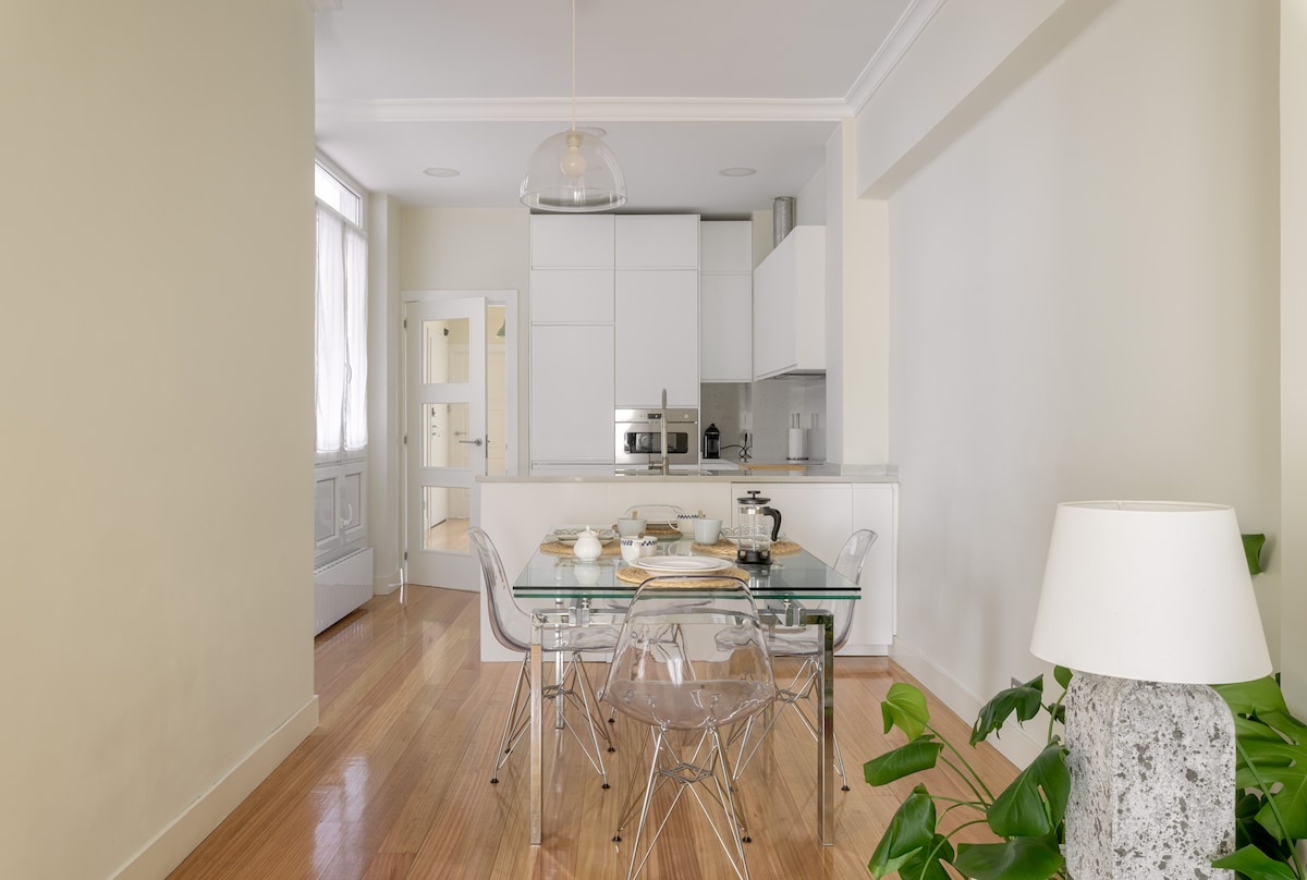 The apartment offers everything you need to spend a few days. Complete kitchenware including expres pot and blender. Oil, vinegar, salt, sugar and cleaning products. Nespresso coffee machine with welcome capsules. Dishwasher and washing machine with detergent, dryer, hair dryer and irons, iron for clothes, Smart flat screen TV and free wifi. Towels and bedding complete. Heating and hot water with boiler.