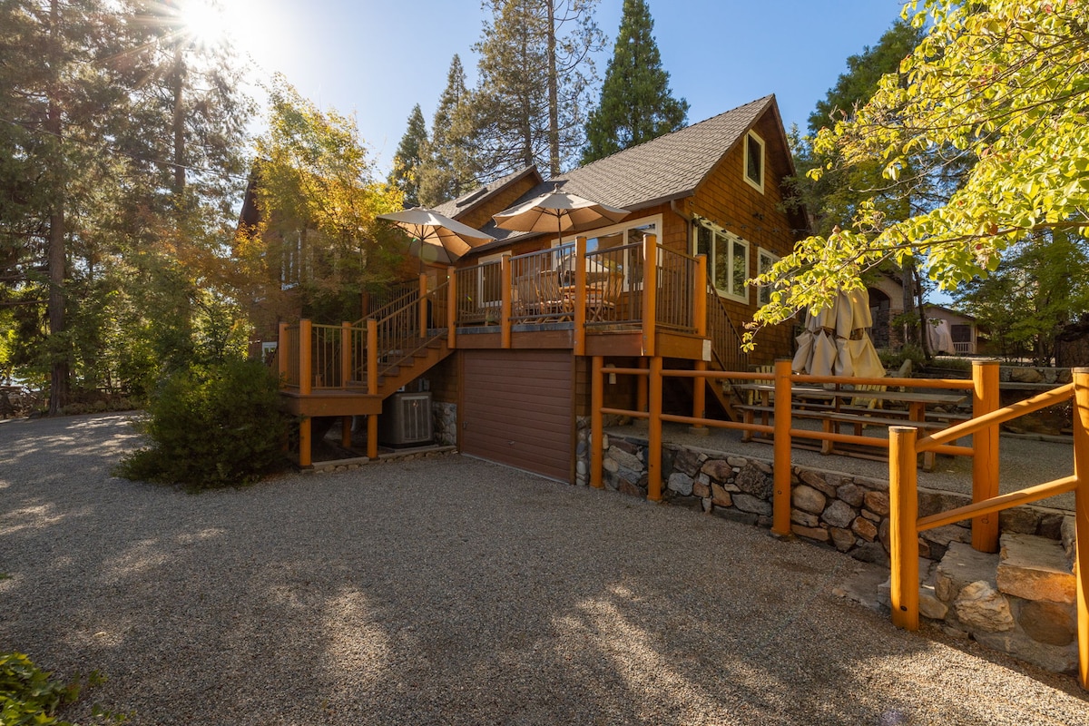 Welcome to one of the 4 original Water-Front Homes in Bass Lake! Just 30 minutes to Yosemite! The private deck provides the perfect space to relax & enjoy the beautiful lake view. Includes a foosball table, corn hole & BBQ Private boat slip available seasonally! This is one of two units on the property with no shared interior spaces or walls. 3 min walk to Bass Lake 3 min drive to Whitney Cove. 1 min drive to Willow Creek Trail Experience Bass Lake With Us & Learn More Below.