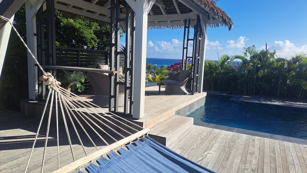 Hidden away in the heart of the countryside, not overlooked, this 40m² loft, embellished with its private pool and deck, offers you an exceptional experience in a quiet and natural environment. Tastefully decorated and equipped with dream amenities, ideal for relaxing and enjoying the green setting. Our concierge will be delighted to make you discover the riches, unusual corners of our island and reserves for you to discover on site for a tailor-made and unforgettable stay!