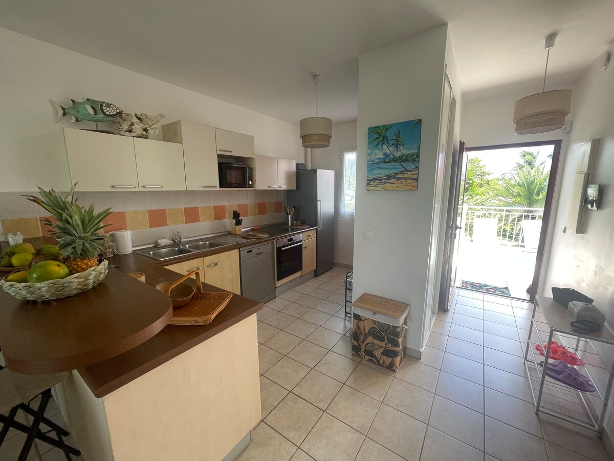 🌴 Exceptional beachfront apartment – Sea view & direct access to Raisins Clairs Beach On the 1st and top floor of a secure upscale residence, with shops and restaurants within walking distance Renovated and air-conditioned: 2 bedrooms with storage, modern shower room, separate toilet, fully equipped kitchen (washer, dishwasher, large refrigerator + freezer, Nespresso & Senseo) Spacious balcony with sea and pool views, equipped with a plancha. Private Wi-Fi, TV, parking, 300-L private water tank