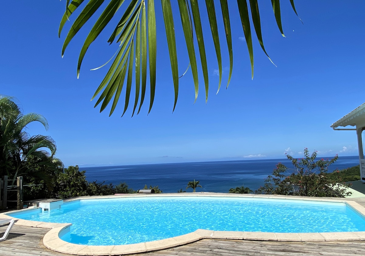 克里奥尔别墅,露台和私人游泳池,海景。