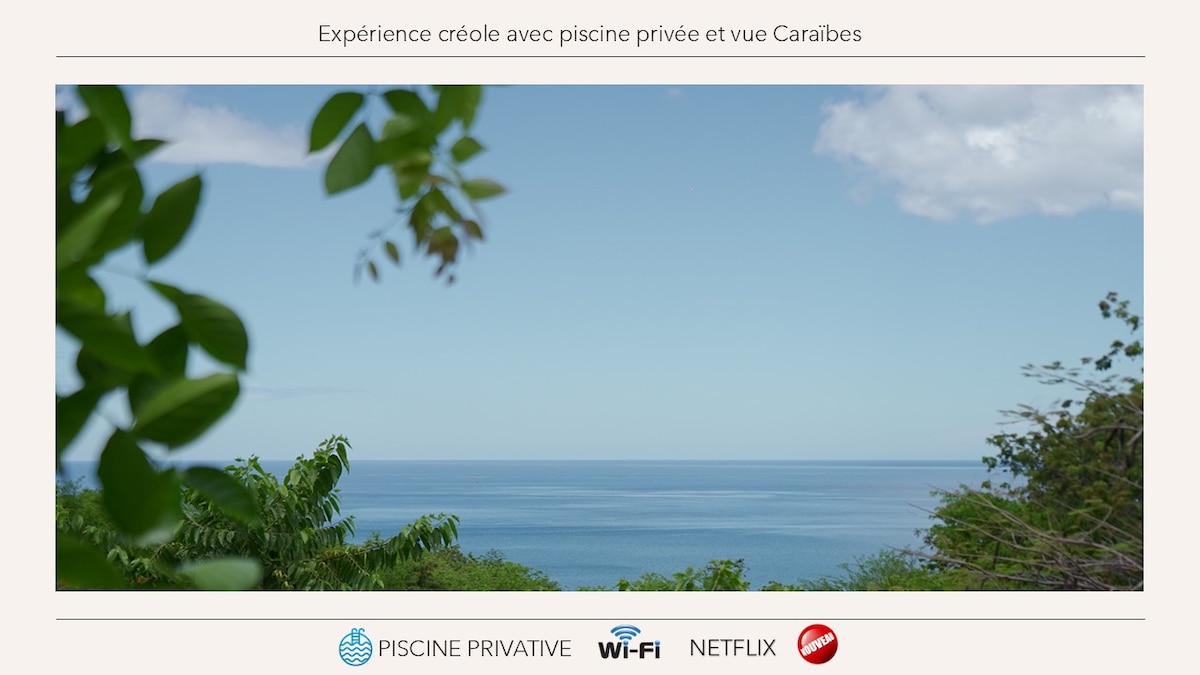 🌅 Un coin de paradis face à la mer des Caraïbes Imaginez-vous sur une spacieuse terrasse, installé sur un transat, un verre à la main, bercé par la brise marine... Face à vous, une vue à couper le souffle sur les eaux cristallines de la mer des Caraïbes, où ciel et océan se confondent. Autour de vous, un jardin tropical luxuriant vous enveloppe : plantes exotiques, fleurs colorées, et le chant des oiseaux en fond sonore. Un havre de paix, idéal pour se ressourcer et se déconnecter.
