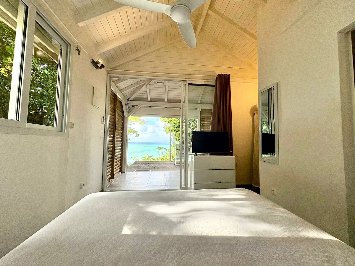 Ici vous serez chez vous. Bienvenue dans votre petit coin de paradis lové au coeur de la belle forêt tropicale de notre propriété. Avec sa terrasse sur pilotis, ce bungalow flambant neuf offre une vue exceptionelle su la baie de Grande Anse. Situé en contrebas de notre maison, un petit ensemble intimiste de 3 bungalows vous attend au calme, chaque bungalow est isolé dans sa petite bulle de verdure où vous pourrez profiter pleinement de votre jacuzzi privatif.