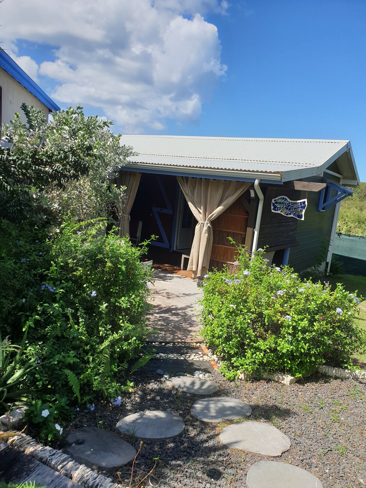 Tiny House perché sur une colline à 400m d’altitude au milieu d’un jardin fruitier. accessible par un chemin forestier en bon état. Lieu calme et isolé entre mer et montagne avec une vue dominante. Logement naturellement frais et aéré sans moustiques. Logement écologique . Situé à 10 min de la plage de Leroux à 20 min de la plage de Malendure à 20 min de la plage de Grande Anse Adaptée aux personnes qui souhaitent se déconnecter, se reposer ou se ressourcer.