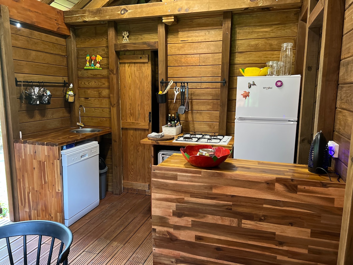 Tiny House perché sur une colline à 400m d’altitude au milieu d’un jardin fruitier. accessible par un chemin forestier en bon état. Lieu calme et isolé entre mer et montagne avec une vue dominante. Logement naturellement frais et aéré sans moustiques. Logement écologique . Situé à 10 min de la plage de Leroux à 20 min de la plage de Malendure à 20 min de la plage de Grande Anse Adaptée aux personnes qui souhaitent se déconnecter, se reposer ou se ressourcer.