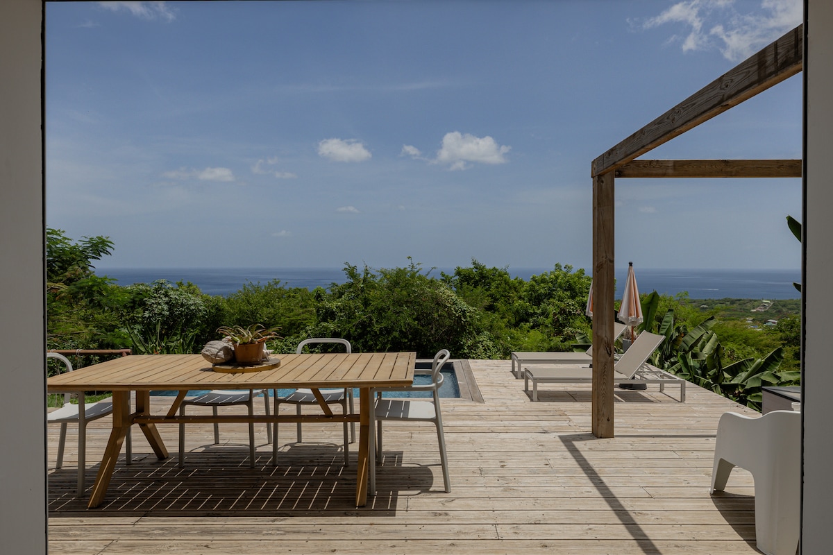 克里奥尔别墅,露台和私人游泳池,海景。