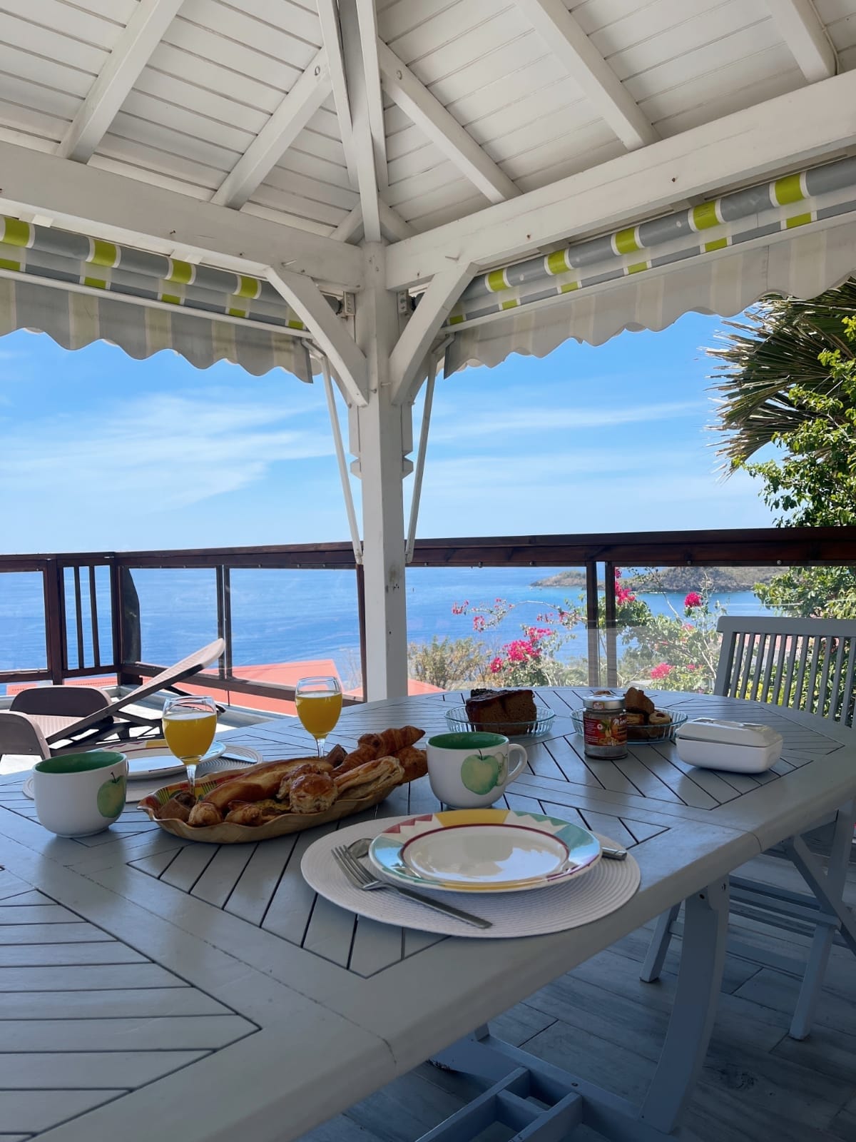 Nestled on a natural view point overlooking the Caribbean Sea, the 5-star Villa Blue Moon is one of the exceptional villas offered by *Blue Haven Villas Guadeloupe*. Sleeps 2. - Salt-water pool just steps from the super-king-size bed facing the sea with unopposed views. - Mosquito nets on windows and bed. -Fully equipped kitchen; Nespresso, dish & clothes washer, oven... - 180° view and sea access to one of the most beautiful snorkeling spots. - snorkelling gear - Parking, a-c, BBQ, Wi-Fi