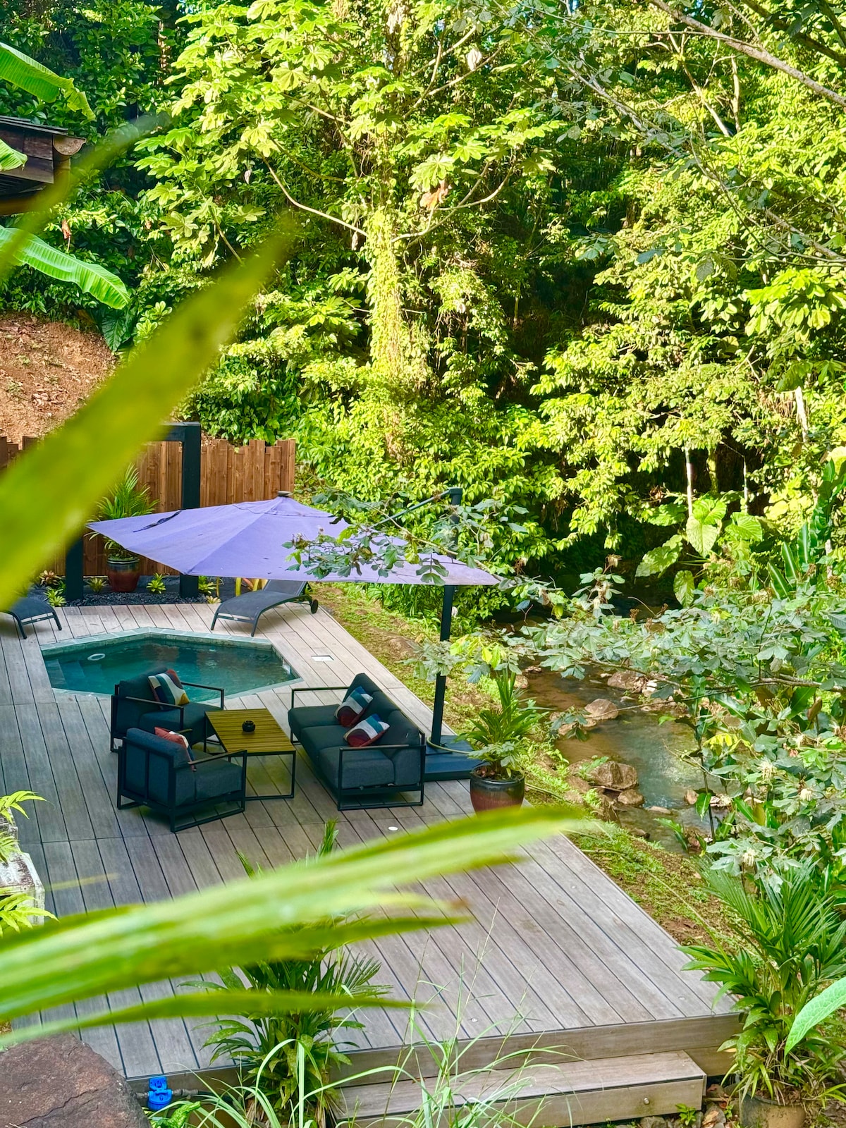 Votre séjour dans notre gîte, au rez-de-jardin du chalet, dans une nature luxuriante ne vous donnera qu'une envie de revenir. De ce lieu unique qui vous offrira tout le charme et le confort nécessaires pour passer de bonnes vacances, vous serez à 2 minutes d'un bain en rivière et à 4 minutes d'un bain en mer Caraïbes. L’expérience inoubliable de nager avec les tortues de la Réserve Coustaud puis de finir par un bain en rivière avant d'aller vous prélasser dans les hamacs qui vous attendent.