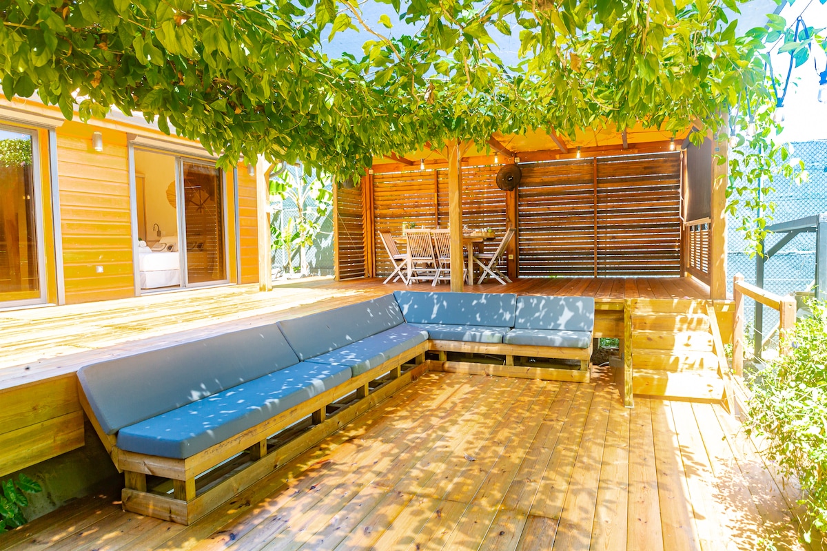 Ensemble d'hébergements atypiques sur le Domaine du Manial arboré d'arbres fruitiers/exotiques. Havre de paix pour un voyage vers Soi, seul ou accompagné, à 100m de la plage galets/sable fin, où les couchers de soleil sont à couper le souffle; forêt, rivières et cascades, parcs et jardins, à proximité. Idéalement situé pour vos activités de loisirs en région sous le vent, 7 minutes de BOUILLANTE et 10 minutes de DESHAIES.