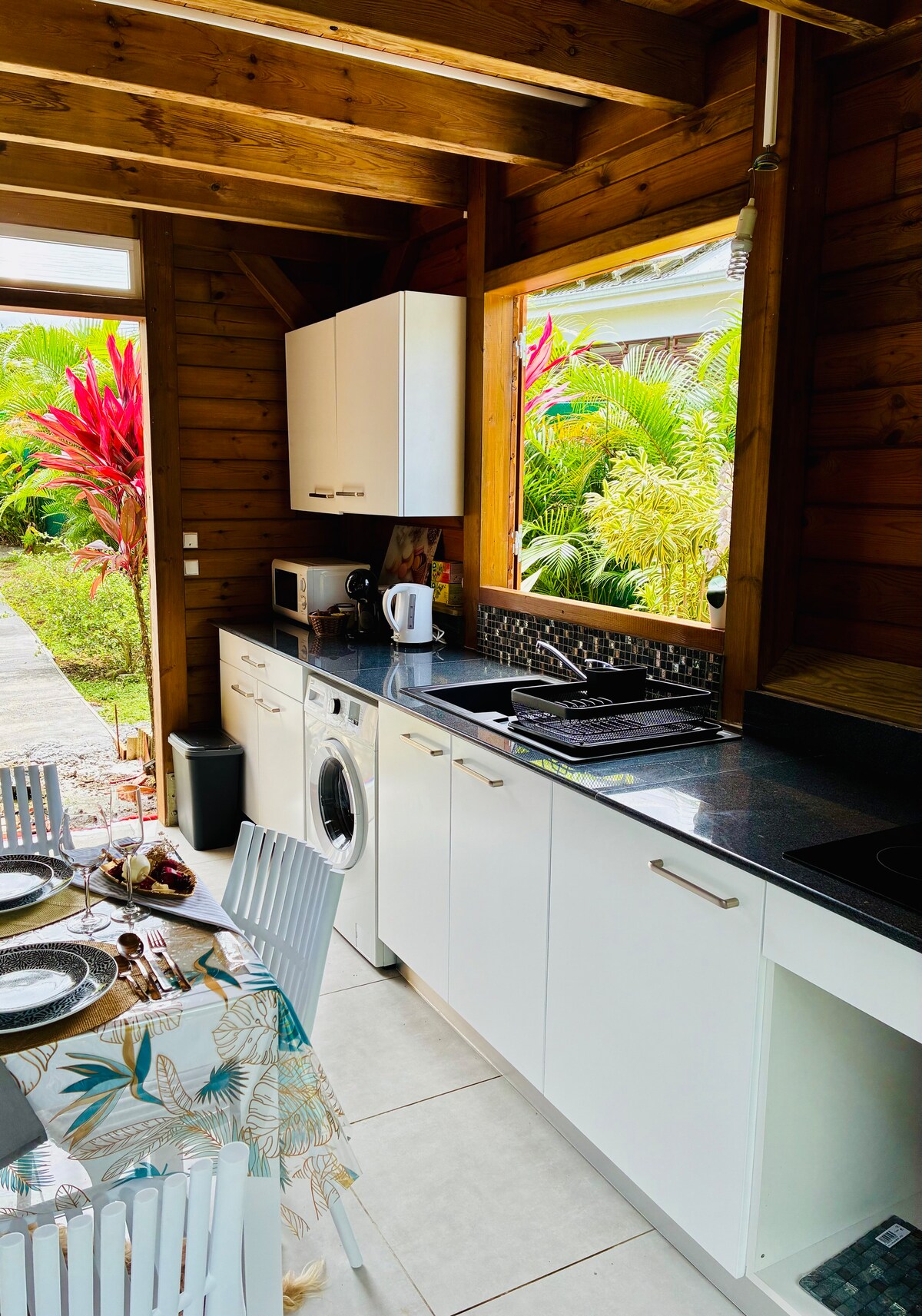 Notre bungalow est niché au cœur d'un jardin créole, face à l'archipel des Saintes. Il offre calme et fraîcheur à proximité des plages et des rivières du Sud Basse-Terre. l'accès à la piscine, à la maison principale et au parking se fait par le jardin (15 à 20m). Nous serons heureux de vous accueillir à votre arrivée autour d'un pot de bienvenue !