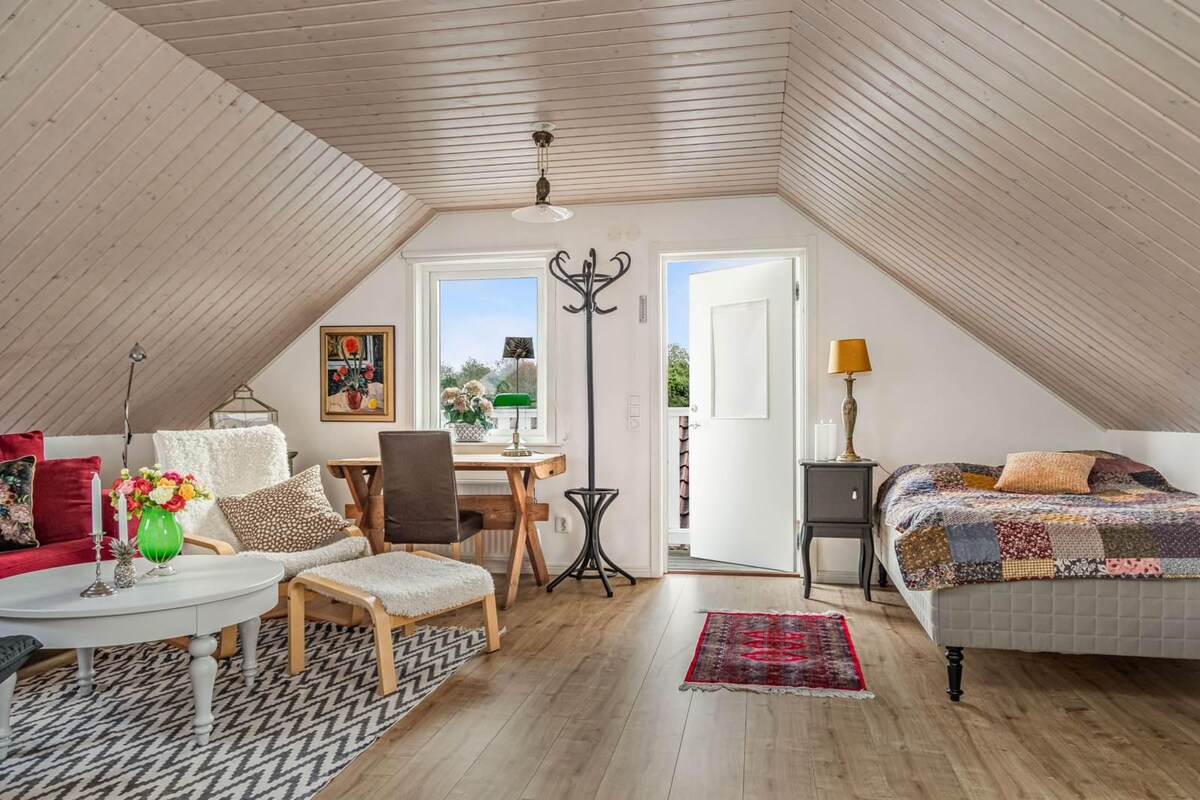 Ett semesterboende på landet! Vi erbjuder en lägenhet i ett nybyggt fristående hus på vår gård. Ca 2,5 km till havet och fin strand i Vejbystrand. Det finns plats för 6 personer. En dubbelsäng, två enkelsängar samt en bäddsoffa för två. Huset har en öppen planlösning med ett allrum samt ett badrum på nedervåningen. På ovanvåningen finns ett rymligt sovrum. Det finns en delad uteplats som inte är helt iordningställd. I nuläget finns ett bord med 6 stolar samt en delad grill.