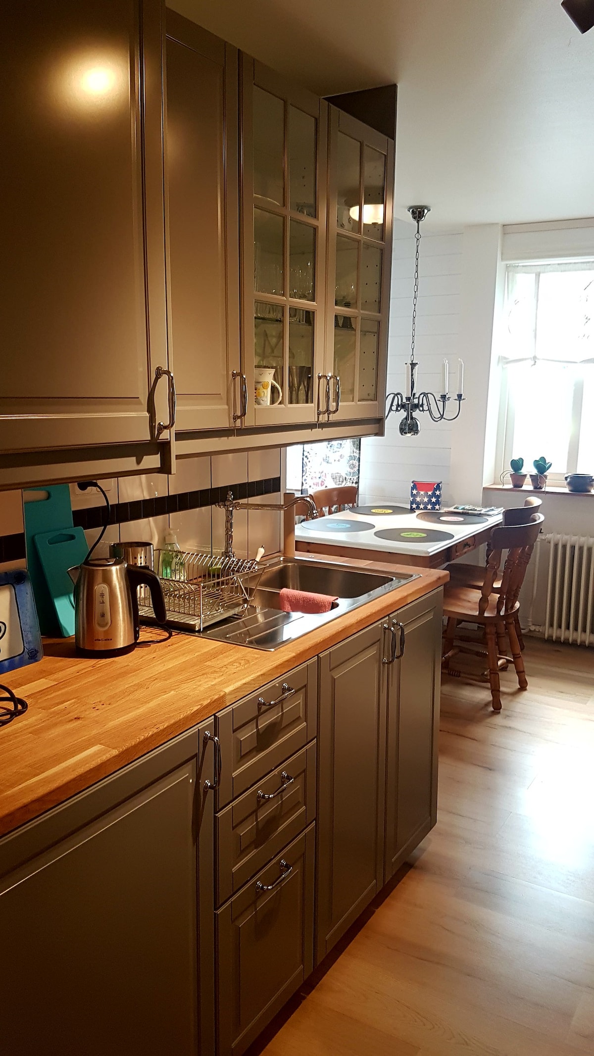 Denna lägenheten finns i ett hus med 4 lägenheter i hjärtat av Varberg, med en känsla av att man befinner sig på landet. Närhet till centrum, bad, nattliv, shopping och restauranger 10 min gångtid. Härlig innergård, som givetvis får utnyttjas, flera uteplatser och veranda. Lägenheten är fullt utrustad, finns det speciellt behov för nåt mer, så kan vi garanterat lösa detta. Det kan dock vara lite lyhört, för det är ett gammalt hus.