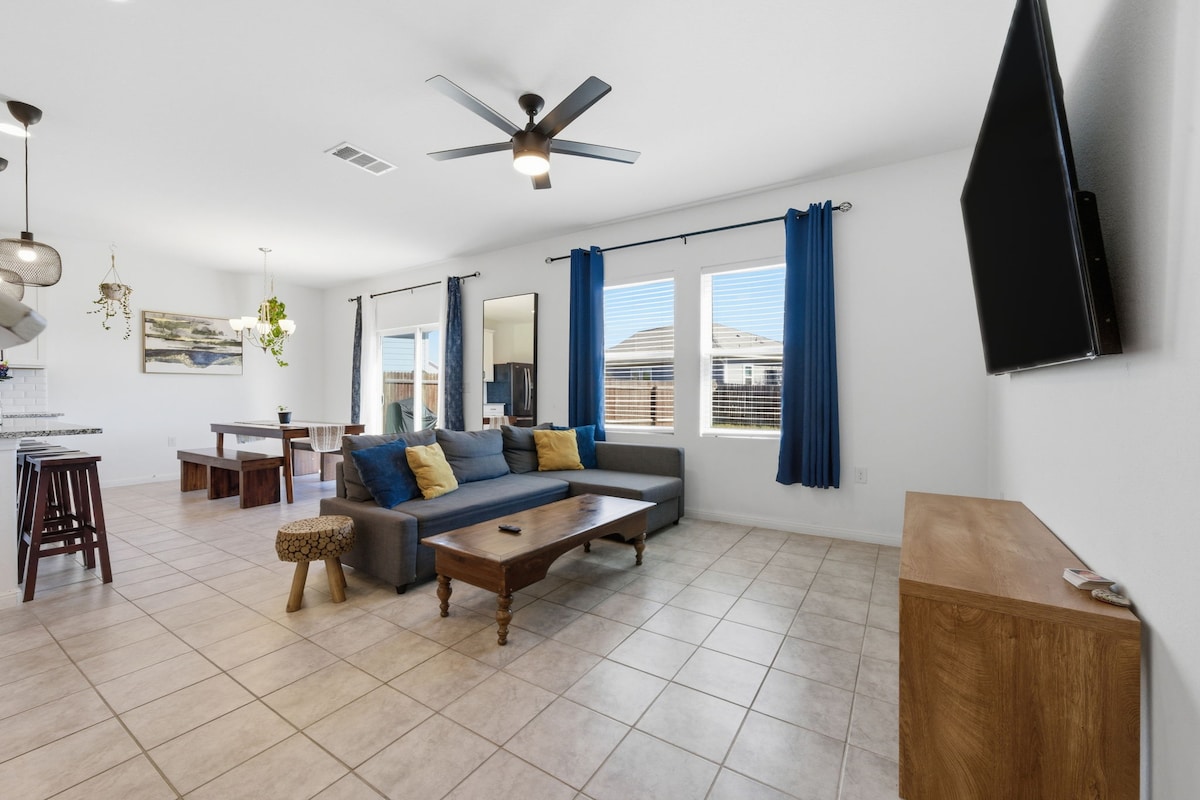 Located in Elgin TX, just 20 minutes east of Austin makes it convenient for a day out in the city, ACL, SXSW and Formula One. This serene and manicured property provides ample room for extended families or corporate stays. This spacious retreat offers a comfortable living space from the hustle and bustle of city life. Located in a quiet neighborhood near Elgin’s famous BBQ spots, just a short drive to shopping centers like HEB, easy 15 minutes drive to Camp Swift, Samsung, and Space X facility.