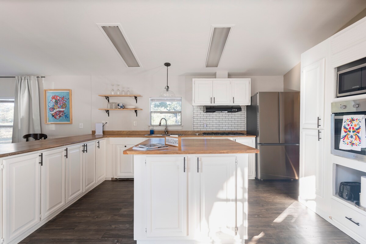 ✦ A modern, but cozy, 600-sq.-ft. Barndominium with full kitchen and bath, one king bed, living room, closet, Amazon, Netflix, Disney+,Roku, and fast WiFi. We built the barndo in 2022, and furnished it for Airbnb. We have a Roku TV in the living room as well in the master room configured with a Amazon and Netflix set up application, which gives you access to the network, This also allows you to log into your own streaming services such as , Hulu, HBO, Cinemax and so on.