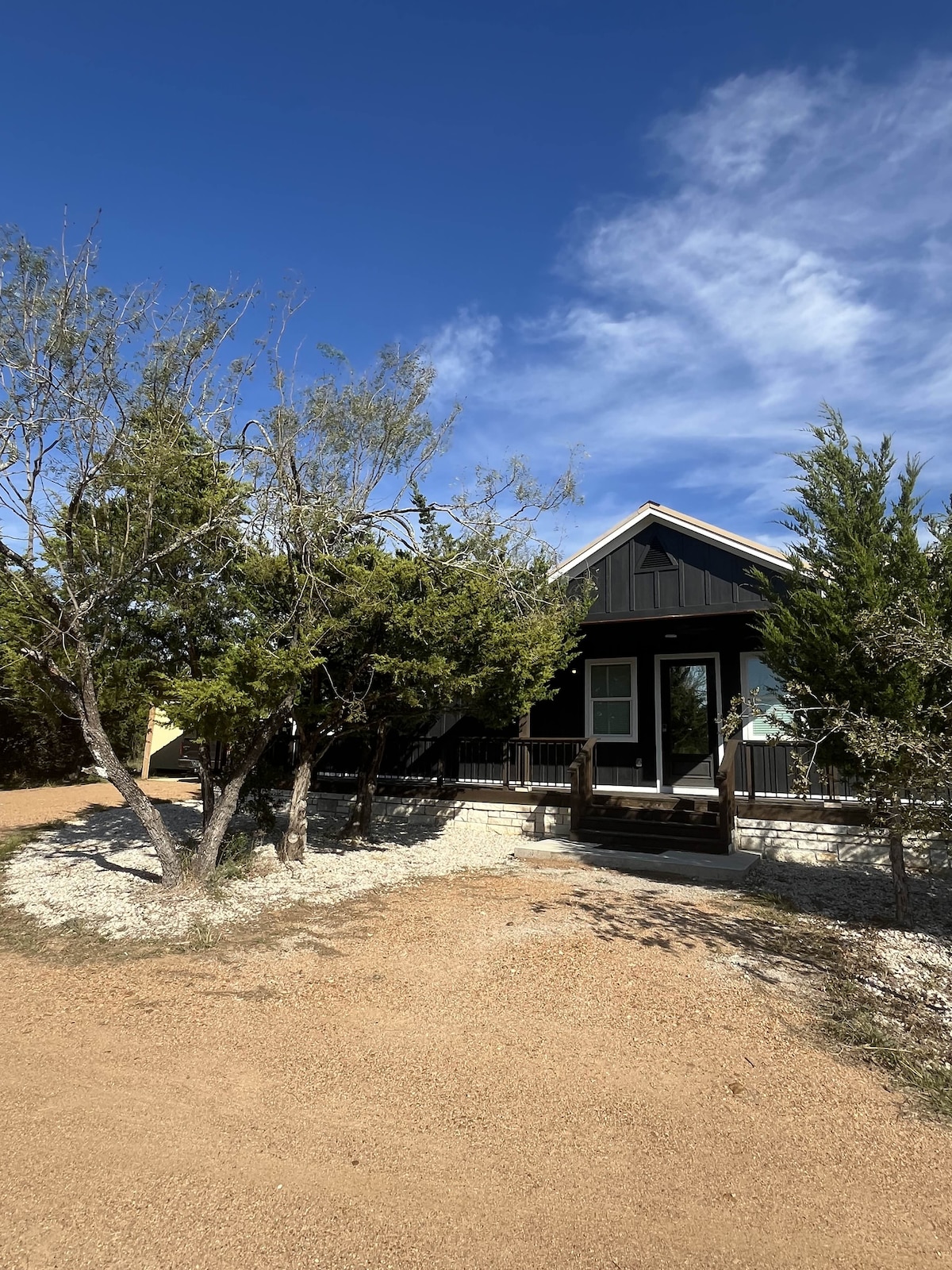 Unwind in this modern cabin where nature meets comfort. Enjoy an interactive experience with friendly farm animals eager for pets and treats. Soak in views of the serene pond, grazing cows, and horses. Explore trails on secluded acreage. Light-filtering blinds, AC, and Starlink WiFi. Built in 2023. We have piggies, mini goats, cows, horses, donkeys, and a black lab to say hello to Close to Circuit of the Americas, Bastrop, Austin Airport, and Smithville.