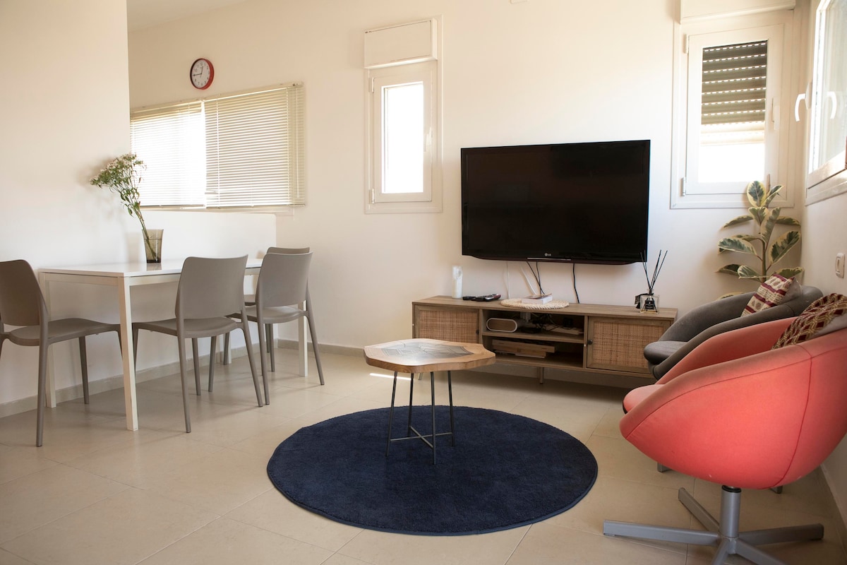 beautiful spacious renovated house. ground floor, 45 square meter in a quiet neighborhood in south-east tel-aviv next to a beautiful park with a lake and sport facilities, 3 km fron center of town and jaffa harbor.free parking lot. big living room and bedroom. fully equipped kitchen,washing machine.fast internet.smart tv with internet conection. perfect for a single,couple, or family. דירת קרקע משופצת מרוהטת ומאובזרת בשכונת עזרא בדרום-מזרח תל אביב. חנייה בשפע חינם. תחבורה ציבורית קרובה.