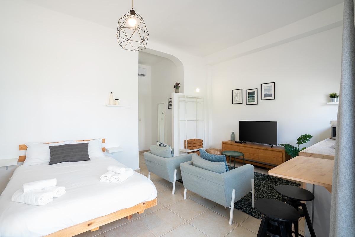 Escape to magical Neve Tzedek. A one-bedroom retreat nestled within the Suzanne Dellal Dance Center. Explore Neve Tzedek’s historical scenery, restaurants, cafés, and boutiques 5 min walk to the beach, Elifelet station, Park HaMesila, Rotchild, Nachlat Binyamin, Florentin, Noga and Jaffa The apartment offers a true Neve Tsedek vibe with warm, luxurious feel, equipped kitchen, high quality bedding, and an exclusive discount at the top-rated Spa Neve Tzedek, conveniently located just downstairs