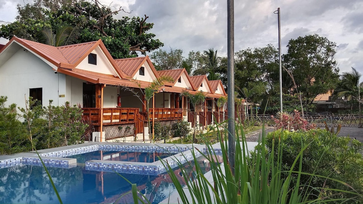 A lovely guesthouse for your family just a few steps away from the beach! The accommodation is within a family-owned resort and has its own parking space so you don't have to worry where to park your car. The place has its own cooking facility (with a refrigerator and microwave), toilet and bath, living room, and an air-conditioned bedroom. A 10-people dining table+chairs can be used within the resort free of charge. BBQ grills, 5 Kayaks, 4 Nipa Huts, and Karaoke are available for rent. See you!