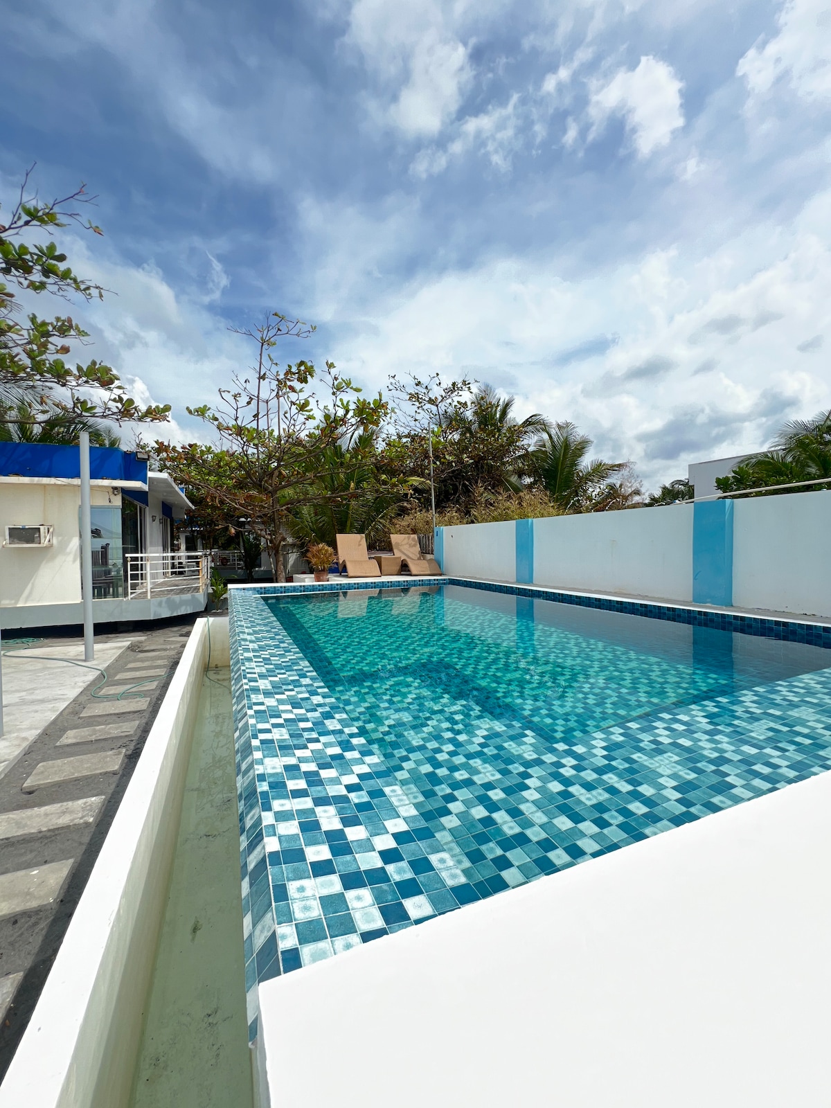 bluewave beach resort is a beach front property with a combine white,gray and black powder like sand. bluewave beach resort has 6 20sqm.rooms and has a capacity of 4pax to accommodate guests. 1 bunk bed and private cr. 1 beach house 50sqm. studio type and has a capacity of 10pax. w/ 2 bunk beds and 1 double bed and private cr extra bed is 200/night it is gated and very secure resort with cctv cameras. activities: boating snorkeling videoke