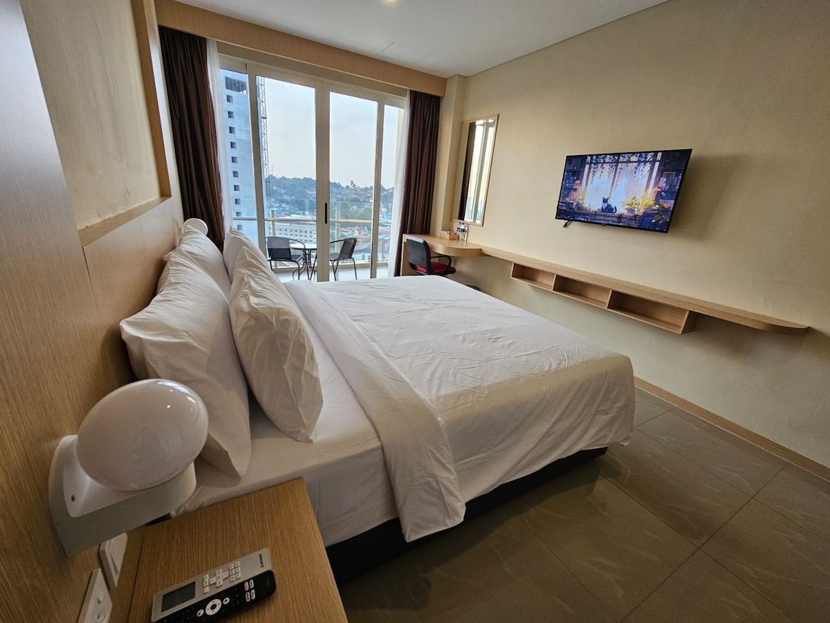 Enjoy a peaceful stay in this centrally located unit at Nagoya Thamrin City, in the same building as Fave Hotel. It offers a clear view of Singapore from the balcony. In 3 mins to Afarah Mosque, 5 mins to Nagoya Hill Mall, and a short drive to Grand Mall. Please read carefully before you a reservation to this property! This accomodation is based on Syariah /Sharia , it mean does not accept bookings from non-married couples.All guests /couples checking into the same room must present a valid ID.