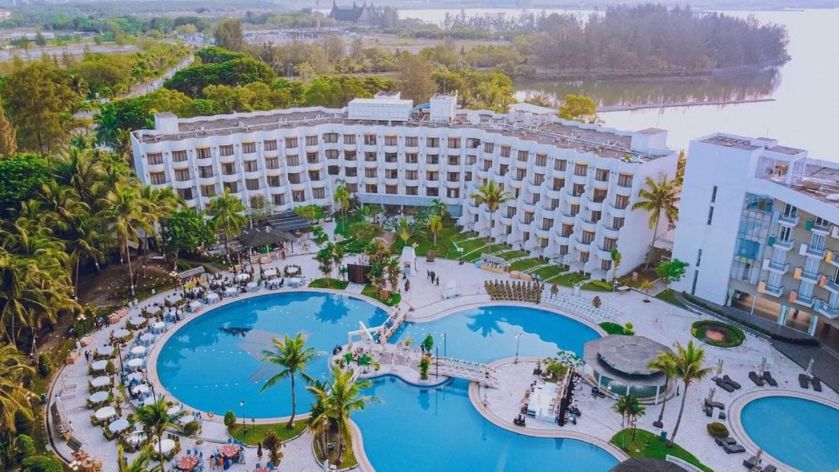 Overlooking the Singapore Strait, The Resort provides a family-friendly accommodation with outdoor pools and a kids club. It has a spa, a fitness centre and spacious rooms with private balconies. The Resort Batam is a 3-minute drive from Batam Waterfront City Ferry Terminal and a 40-minute ferry ride from Singapore Harbour Front Centre. The rooms enjoy views of the large free-form swimming pool or the marina. They are equipped with a safe and tea/coffee making facilities.