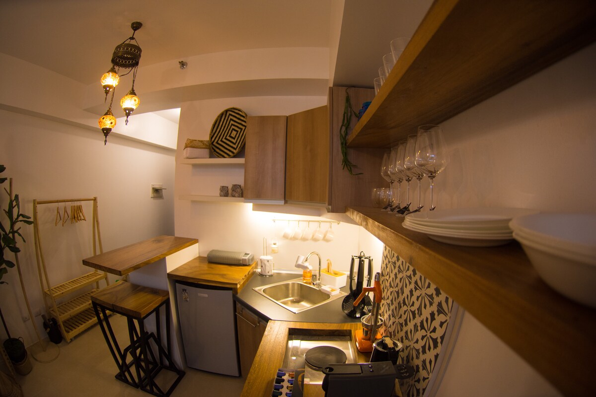 Welcome to Yugen Suites, your tranquil retreat by the sea, where minimalist Japanese design meets the natural beauty of Mt. Pico De Loro. Located at the 2nd floor of Carola B Building inside beautiful Hamilo Coast, this newly remodeled apartment is a 47sqm studio bedroom with ensuite kitchen and bath designed with a clean, natural aesthetic. — CAPACITY — Pico rules limit the room’s capacity to 6 pax, which includes children 1 yr old and above. No exceptions.